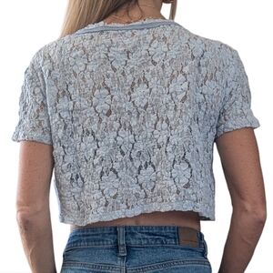 Vintage Free People Starlight Lavender Lace Sheer Boho Chic Cute Crop Top Size S