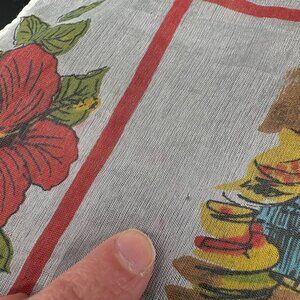 Vintage Freeport Grand Bahama Island Souvenir Scarf Shear Tropical Map Red