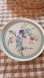 This vintage Riviera Van Beers cake plate, from the Freesia pattern for Signature Housewares, Inc., is a charming addition to any home. The round ceramic stoneware dish features a beautiful floral design with freesia flowers in shades of pink, blue, and purple, and is finished with a green and white checkerboard border. This versatile piece can be used as a cake plate, serving platter, or decorative item. It is in excellent used condition with no cracks or chips. Made in Thailand. Dimensions: Approximately 11 inches in diameter.