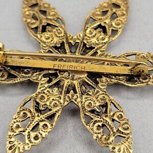 Vintage Freirich Filigree Starburst Brooch Pin Gold Tone 1960s