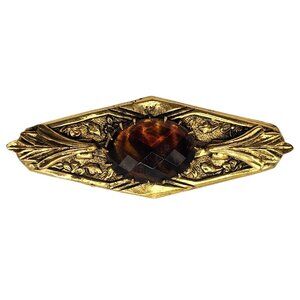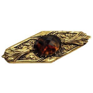 Vintage Freirich Gold Tone Victorian Revival Amber Glass Mourning Brooch Pin