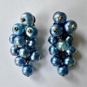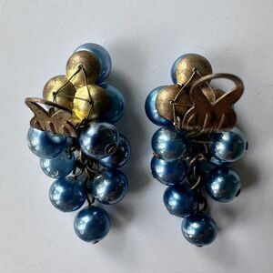 Vintage French 1930s Berry or Grape Cluster Glass Bead Earrings Possibly Gripoix