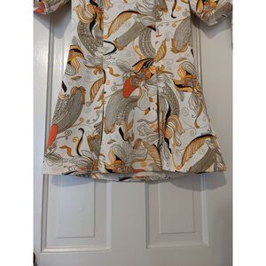 -Orange & brown psychedelic floral print on cream background