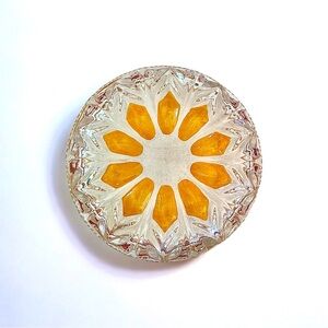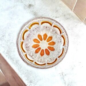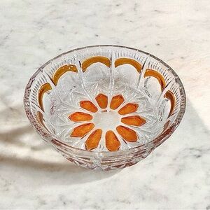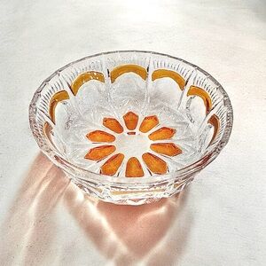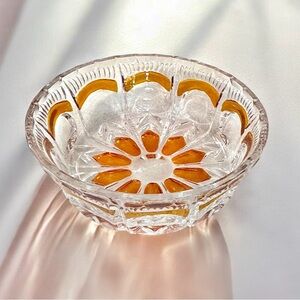 Lovely vintage French crystal candy dish or bowl. Decorated with amber hues giving a great contrast to the clear crystal. Use this bowl for anything from candies to candles.