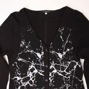 Vintage FA Concept (French label) black cardigan with white marble print. Tag is marked Size "T2" which equates to a Medium in France. I think it could definitely fit a US Size Small, like I usually wear - with a relaxed fit. In very good vintage condition - shows only minor wear. Please ask with any questions and see my closet for more items - create a bundle and I'll offer a discount!