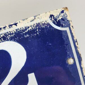 Elevate your home's curb appeal with this charming vintage blue enamel house number plaque. Its classic design and durable material make it a lasting addition to your exterior decor. The bold white number ensures visibility from a distance, enhancing both style and functionality.