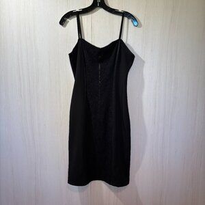 Vintage French Bodycon Dress, Black with Lace Detail, Sz 40/ US 8