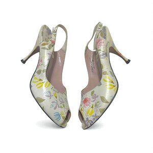 Vintage French Bootery 1950s Floral Leather Peep Toe Slingback Heels –Size 8.5B