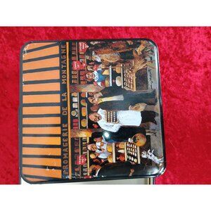 This vintage decorative tin features a charming illustration of a French cheese shop. Ideal for storing small items or adding classic decor.
