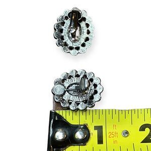 Add a touch of vintage elegance to your outfit with these beautiful clip-on earrings from France. The oval shape and clear color of the plastic faceted stone, combined with the small crystals, make for a stunning accessory. Perfect for any occasion, whether it be for an engagement, wedding, anniversary, birthday, or Valentine's Day. The clip-on closure ensures that these earrings are comfortable to wear all day long, and the lobe area is the perfect spot for them. These earrings are an original designer piece and are not modified in any way. They are a great addition to any fashion jewelry collection.