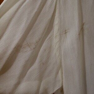 A delicate vintage French Connection blouse with beautiful floral eyelet embroidery across the front and shoulders. The lightweight cream fabric, pointed collar, and slightly cropped hem give it a soft, romantic feel. While the front is stunning, the back has a large discoloration and several smaller spots throughout, making this piece best suited for restoration, upcycling, or creative styling projects. A lovely base with charming vintage details worth saving.