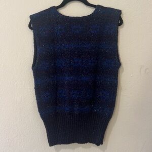 Vintage French Connection Sweater Vest Navy and Royal blue stripes Size M Made in Hong Kong Excellent condition