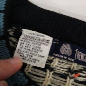 Vintage French Connection Wool Sweater M Black Multicolor Floral Pattern