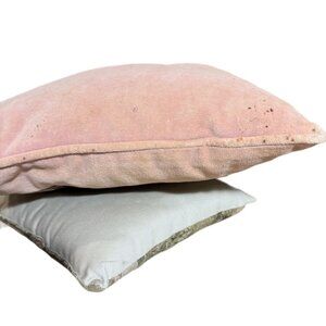 Pink one has some spots on the back, small one has a mark on back as well. Have not spot treated, I am not good at that and don't want to ruin the pillows