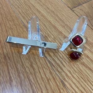 Vintage French Cuff Links with Red Stones and Plain Tie Tack
