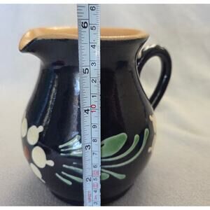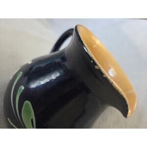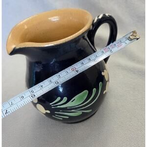 Vintage French Dark Blue Pottery Milk Pitcher Floral Vase Blue White