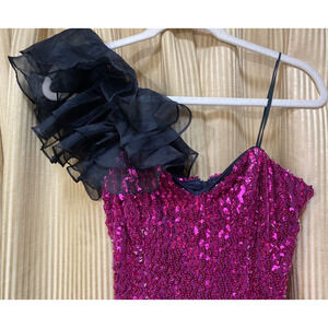Vintage French Designer Party Dress Pink Sequin Taffeta shoulder Womens Small