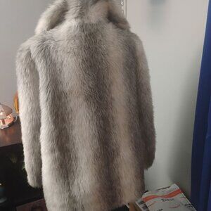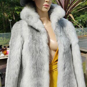 This stunning vintage faux fur coat (Made in France) features a soft silver-gray plush that feels incredibly real — thick, silky, and dramatic in all the right ways.