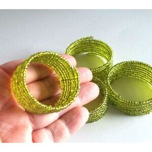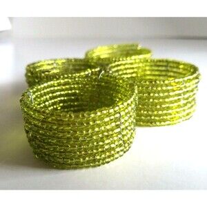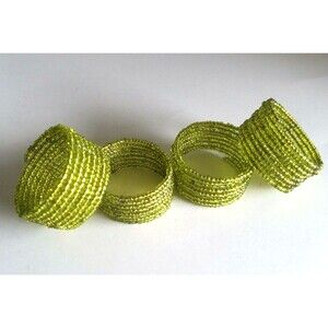 Get this set of 4 napkin rings French Micro Beaded Coils, Lime Green Micro Beads, Coiled design, Beautiful Excellent condition, I have 3 Sets, buy more than one and get a discount plus combined shipping.