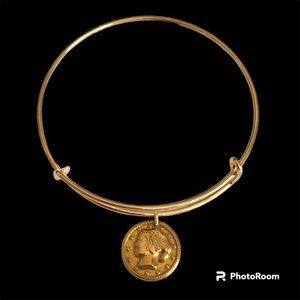 Vintage French Italian Coin Charm Bracelet Gold Plated Wire France Italy Lady