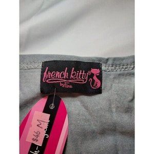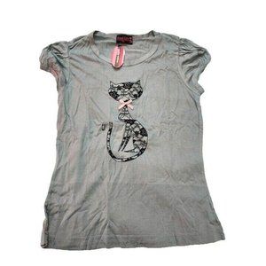 Vintage French Kitty by Mighty Fine Womens Top, Grey, Black Lace Cat, Small