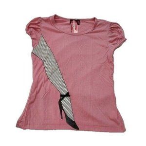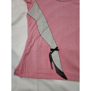 Vintage French Kitty by Mighty Fine Womens Top, Pink, Parisian, White Fishnet Leg, Black Heel, Medium