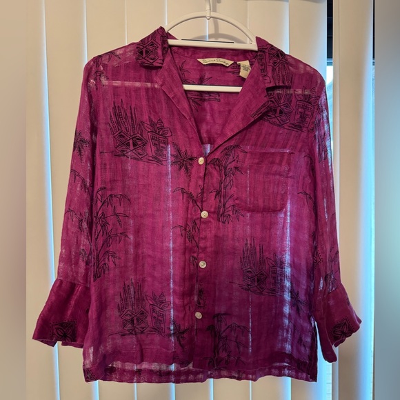 Vintage French Laundry Magenta Linen Button-Down Shirt