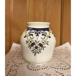 A hand-painted ceramic mustard pot featuring the classic Moutarde Bocquet Yvetot design from 1735. This vintage jar offers both practicality and decorative charm.