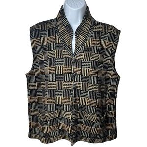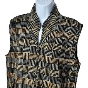 Vintage French Rags Artsy Geometric Print Knit Holiday Chic Substantial Vest 2