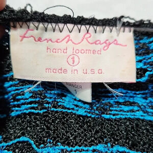 Vintage French Rags Hand Loomed Knit Sweater & Skirt Set Black Blue Fringe Size