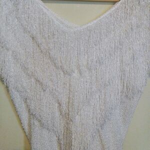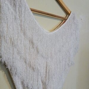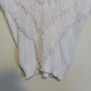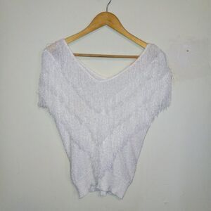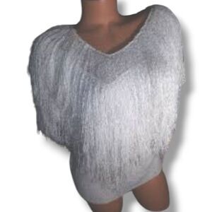 Vintage French Rags White Fringe Knit Sweater-Size 2-Hand Loomed-V Neck-Party