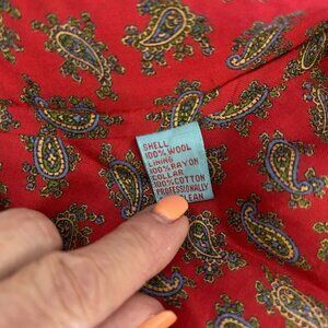 Vintage French Red 100% Wool Open Drape Paisley Lined Swing Jacket