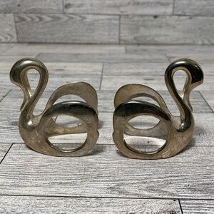 Discover elegance and sophistication with this Rare Vintage French Silver Plated Swan Ring Napkin Holders Shelf Decor - set of 2.
