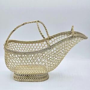 PRISTINE CONDITION! Add a touch of vintage charm to your home decor with this exquisite Vintage Mid-Century French Braided Silver Metal Woven Wire Basket Bottle Holder hand made in Lyon France (see mark). Crafted in the late 19th to early 20th century, this piece has intricate detailing and high-quality materials (80% silver purity), this stunning piece combines functionality with elegance. Use it to display your favorite wine bottles or as a unique storage solution for small items. This woven wire basket is a true statement piece that will surely impress your guests and add a stylish flair to any room. Perfect for collectors of fine vintage decor or anyone looking to infuse their space with some classic French flair.