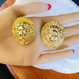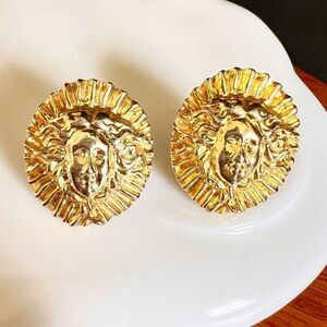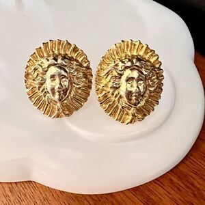 Vintage French Sun King Earrings 3d Clip On Gold Tone Sun Face Sunshine 4723