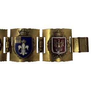 Vintage French WWII Brass Enamel Coat of Arms Link Bracelet 6.75” Approx Shield
