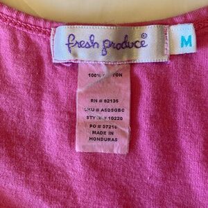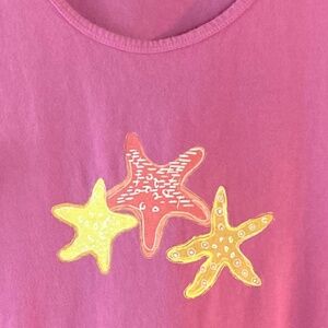 Vintage sleeveless Fresh Produce pink summer dress, size medium, colorful bright pink decorated with three starfish. It is made of 100% cotton and perfect for casual occasions. The dress is size medium with two pockets and measures about 37" shoulder to hem. I am the original owner and never wore the dress. It is in excellent new clean condition.
