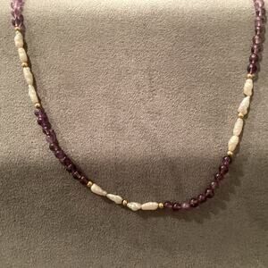 Vintage Fresh Water Pearl, Amethyst and Gold Bead Necklace 18”