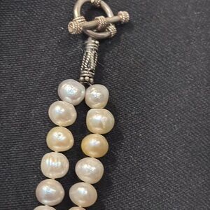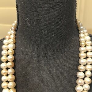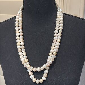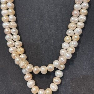 Vintage Freshwater Baroque Circle Pearl Necklace Double Strand Silver toggle 25”