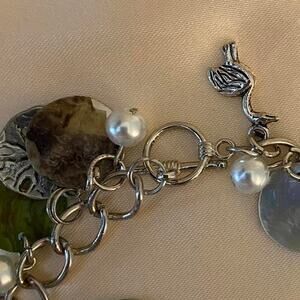 Vintage Freshwater Pearls, Shell Ocean, Beach, Crab, Seahorse, Fish, Sand dollar, Dolphin, Mermaid, Nautical Charm Bracelet