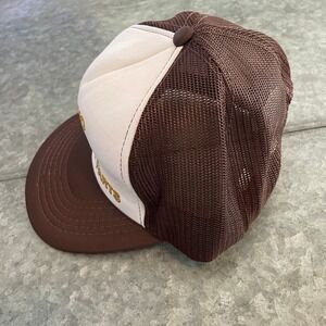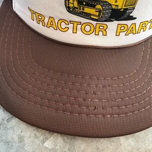 Vintage Fresno Tractor Parts Snapback Trucker Hat Brown Yellow Retro Farmer