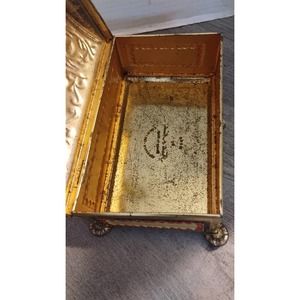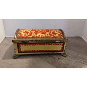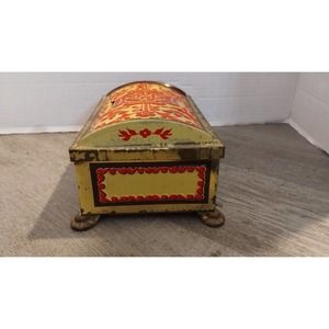 Vintage Fricke and Nacke Embossed Red & Gold Tin/Coin Bank, Western Germany