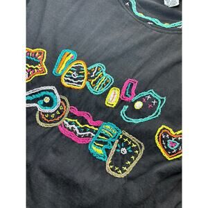 Vintage Friday Embroidered Fiesta Themed Black Top Size One Size