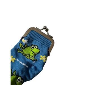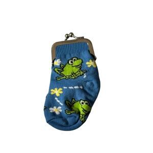 Vintage Frog Coin Purse Blue Sock Style Clasp Wallet Cute Novelty Pouch ~5”