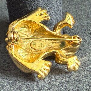 Vintage Frog Pin Enamel Rhinestone Gold Tone Signed Nat Landau Hyman NLH
