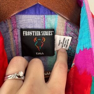 Men’s Tall Vintage Frontier series cutoff vest with an abstract western vibe, full front button closure, collared, two front pockets. EUC