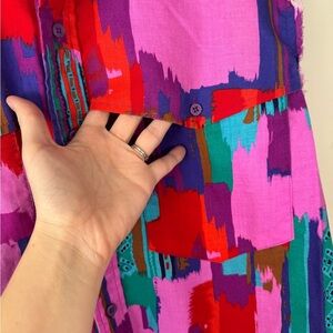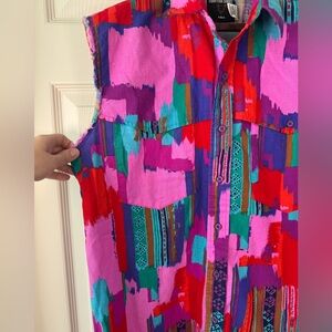 Vintage Frontier Series Western Abstract Button Up Cut Off Vest Tall Medium Mens