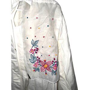 Vintage Frontier Series White Embroidered Western Button-Up Shirt With Floral De