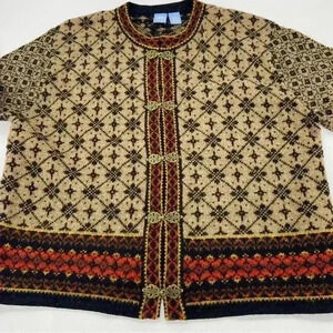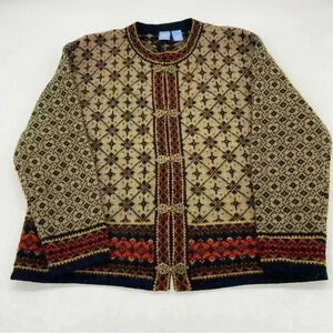 Vintage Frost 100% Wool Faire Isle Cardigan Sweater Size Large Petite