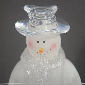 Add a touch of winter charm to your holiday décor with this frosted acrylic snowman figurine. Standing approximately16" tall, the snowman features a clear acrylic top hat, sparkly textured scarf, and a frosted finish for a festive, wintry look.